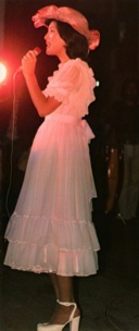 初リサイタル「16才のリサイタル」の衣装を着て、楽屋から出て来る淳子です。